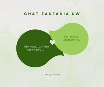 Od 8 stycznia na Uniwersytecie Warszawskim jest dostępny czat zaufania dla osób potrzebujących wsparcia psychologicznego, które preferują kontakt online. To kolejny element programu realizowanego przez Centrum Pomocy Psychologicznej UW (CPP), dzięki któremu każdy może uzyskać pomoc w sposób bezpieczny i dyskretny.