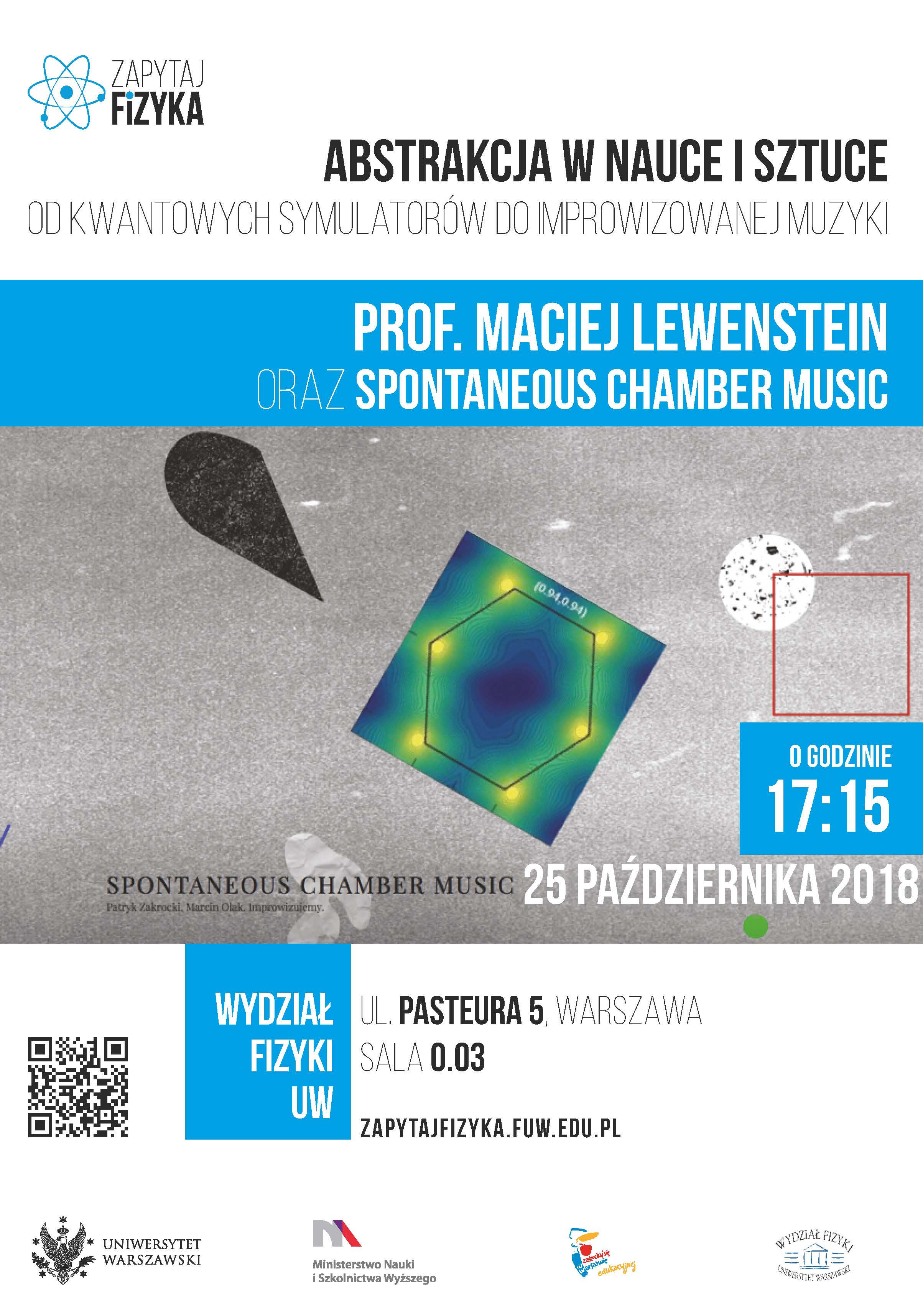 Wykład zatytułowany „Abstrakcja w nauce i sztuce. Od kwantowych symulatorów do improwizowanej muzyki” odbędzie się 25 października o godz. 17.15 w siedzibie Wydziału Fizyki UW (ul. Pasteura 5, sala 0.03).
