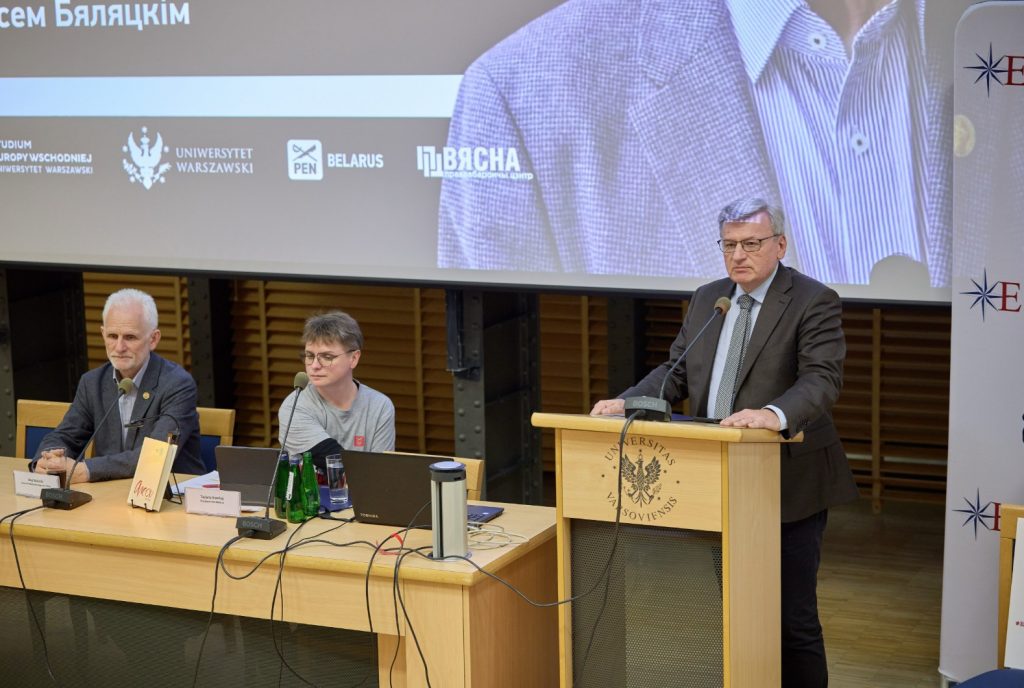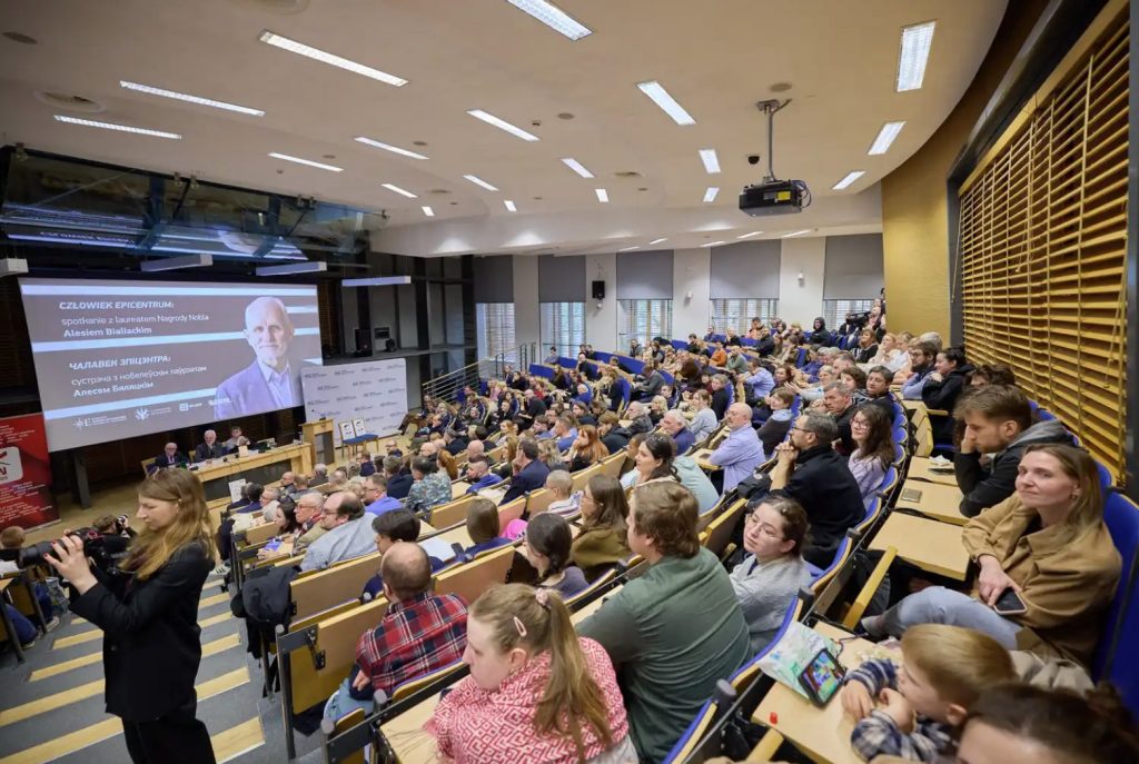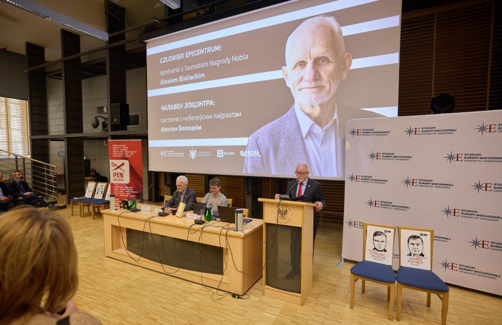 Na Uniwersytecie Warszawskim odbyło się spotkanie z Alesiem Bialackim, laureatem Pokojowej Nagrody Nobla. Organizatorami wydarzenia były Studium Europy Wschodniej UW oraz Białoruski PEN wraz z Centrum Obrony Praw Człowieka „Wiasna”.