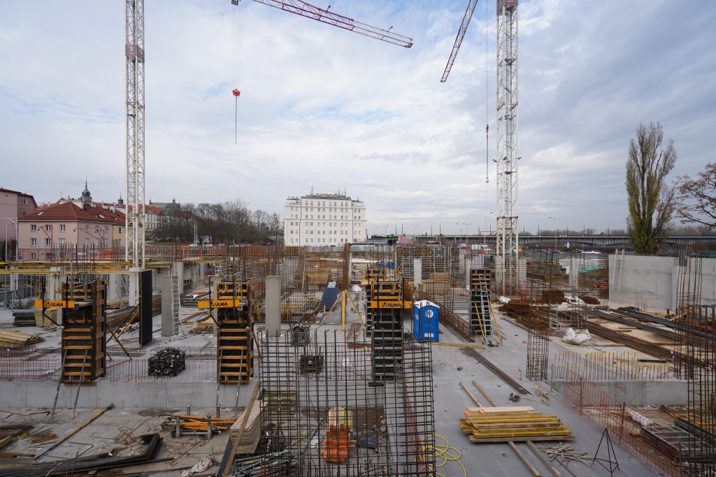 Na placu budowy przy ul. Bednarskiej 2/4 wykonano dotychczas prace rozbiórkowe i przeprowadzono remediację gruntu. Usunięto kolizje z instalacjami podziemnymi znajdującymi się na działce i zabezpieczono wykop. Zrealizowano również część prac związanych z podziemną konstrukcją żelbetową, których kontynuacja planowana jest w kolejnych miesiącach.